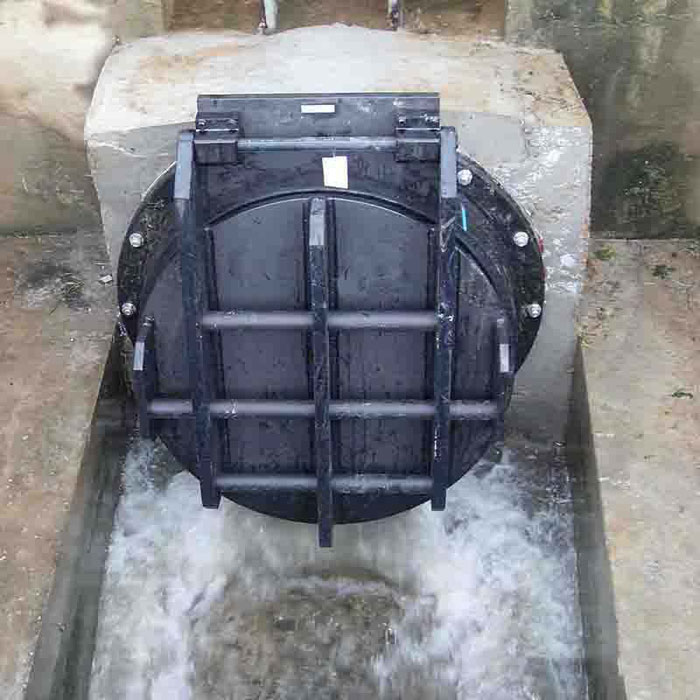 拍門是安裝在江河邊排水管出口的一種單向閥,當江河潮位高于出水管口,且壓力大于管內壓力時,拍門面板自動關閉。以防江河潮水倒灌進排水管道內,防止汛情發生,對人身財產安全是一道重要保障!!!